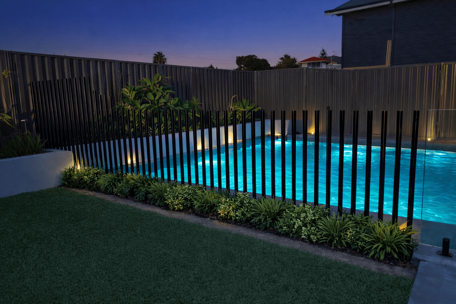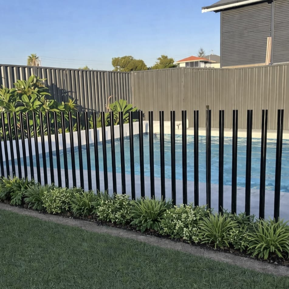 Gallery All (216) Frameless Glass Pool Fencing Aluminium Tubular Pool Fencing Semi Frameless Glass Fencing Radiator and Batten Fencing Curva Battens Isolate Fencing Balustrading Aluminium Slatted Fencing Aluminium Balustrading Aluminium Slatted Products Hamptons Fencing and Accessories Premium Perforated Fencing Barr Fencing Colorbond Rake Panels Spigot variations Curved Frameless Glass Fencing